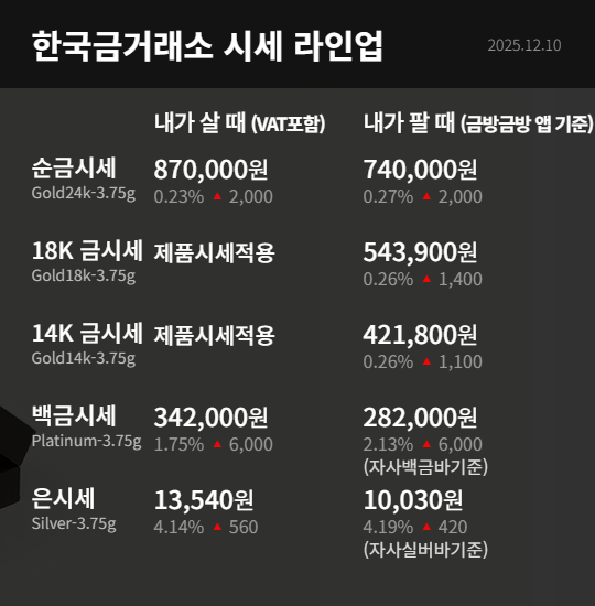 12월 10일 금시세 입니다