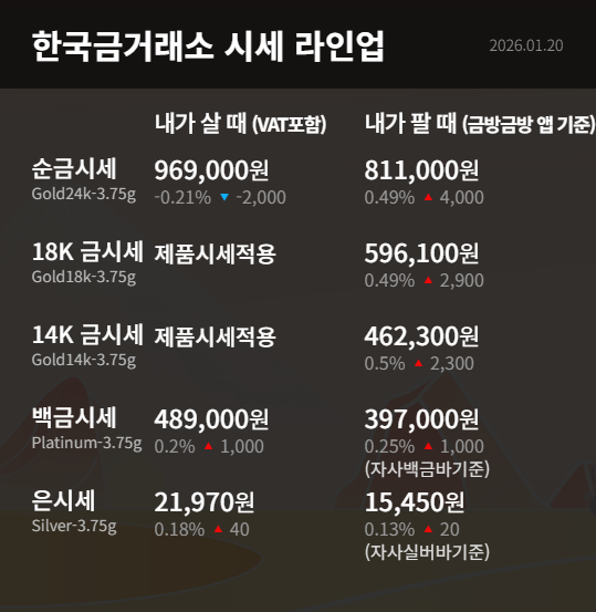 1월 20일 금시세 입니다